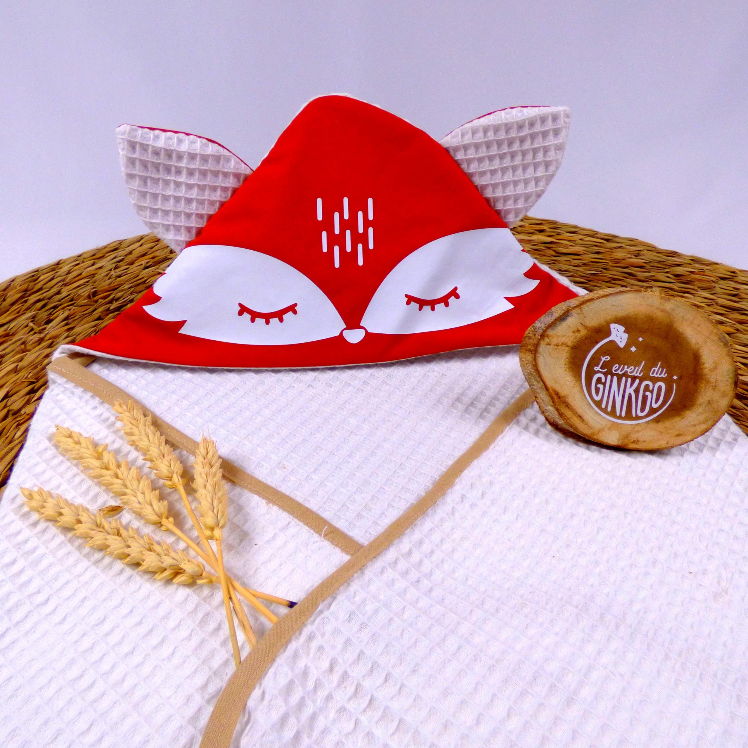 Cape de bain sur le thème lapin ou renard, idéale pour la sortie de bain de bébé, permettant de le sécher et le garder au chaud.